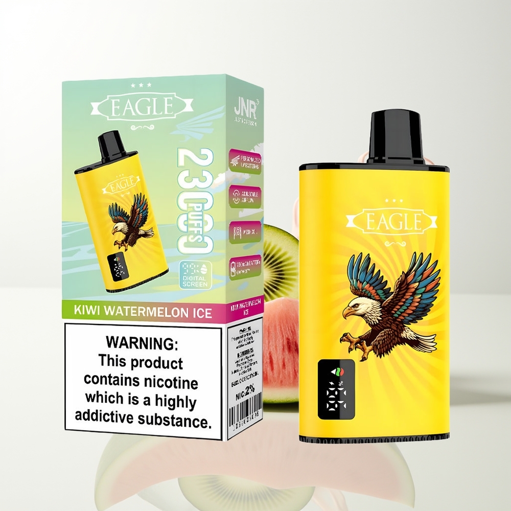 JNR EAGLE Smart 23000 Puffs Einweg-Vape Kiwi Wassermelone Eis Digital Screen 1.0ohm Mesh Coil Einstellbare Luftzufuhr 750mAh Typ-C Ladeanschluss 25ml e-Liquid Kapazität 2% Nikotin