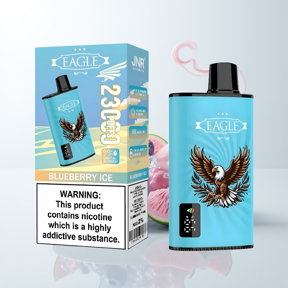 JNR EAGLE Smart 23000 Puffs Heidelbeer-Eis Einweg-Vape mit Digitalem Display, 1.0ohm Mesh Coil, Einstellbarem Luftstrom, 750mAh Akku, Type-C-Ladeanschluss