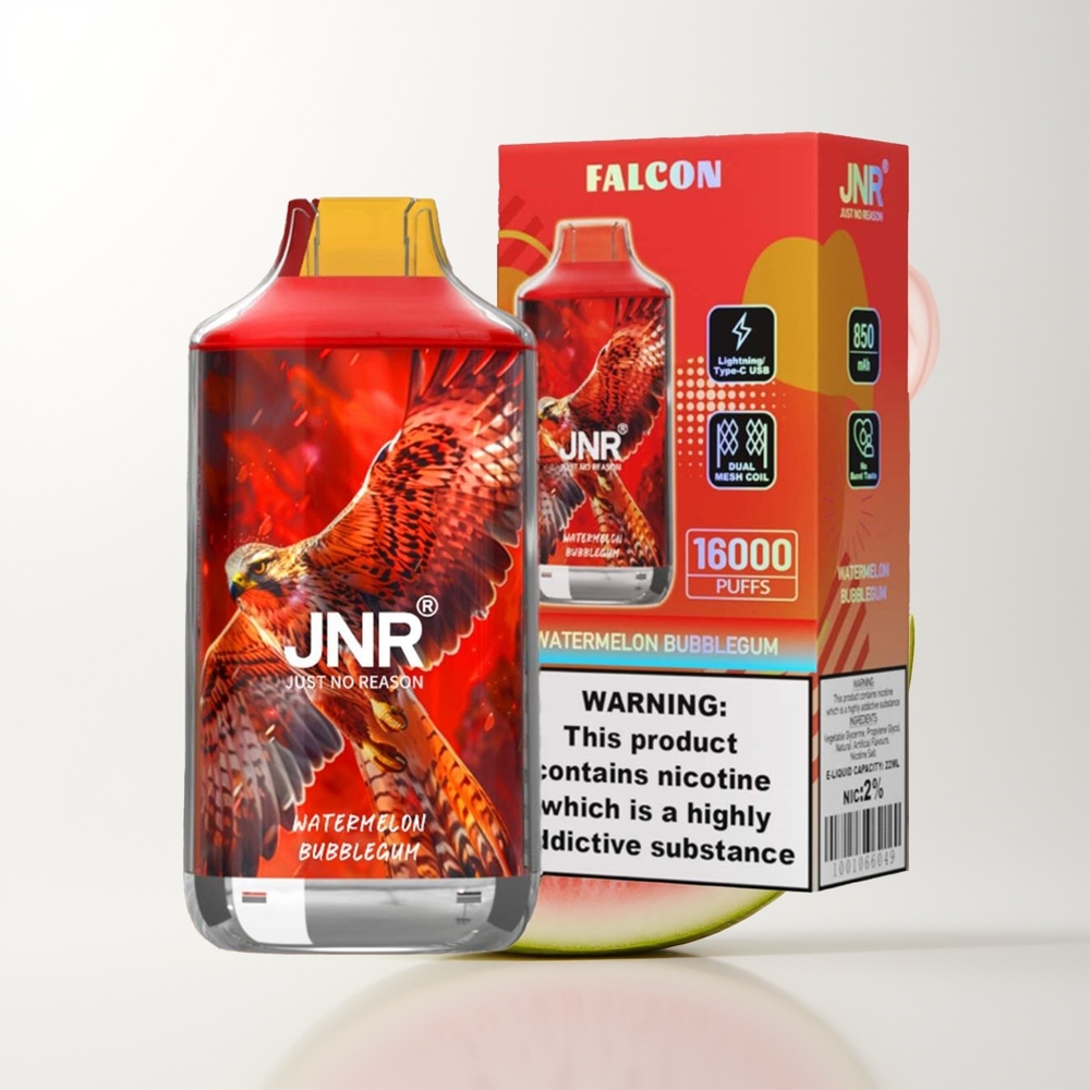 JNR Falcon 16000 Züge Wassermelone Bubblegum 850mAh 22ml Dual Mesh Coil Typ C & Lightning Smart LED Display 0% 2%