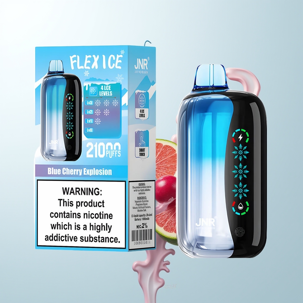 JNR Flex Ice 21000 Züge Blaue Kirsch-Explosion Eiskontrolle 26ml Berührungsdisplay Dual Mesh Typ-C