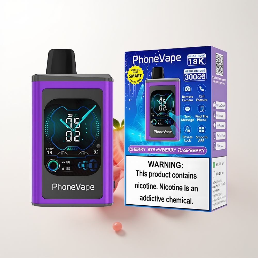 JNR PhoneVape 30000 Züge Kirsch-Erdbeer-Himbeer Wiederaufladbar Typ-C Turbo App-Steuerung Anruf-Text-Funktion Fernkamera Sperrmodus Vollbildschirm Nikotin 2%5%