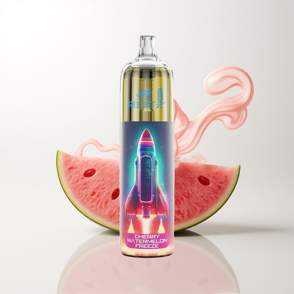 JNR Rocket-X 12400 Züge Kirsch-Wassermelonen-Eis Verstellbare Luftströmung RGB-Lichter 1.2ohm Mesh Coil 850mAh Akku 25ml e-Liquid Typ-C Schnellladung Nikotin 0% 2% 5%