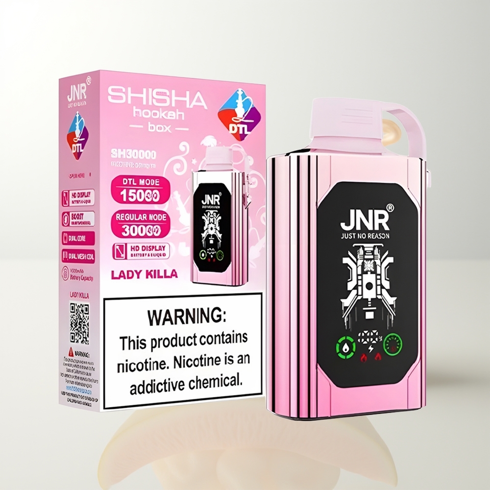 Ideal für Großhandelskaufmann Österreich, die ihren Kunden hochwertige Einweg-Verdampfer anbieten möchten. Die JNR Shisha Hookah Box 20500 Puffs vereist Leistung, Komfort und stilvolles Design in einem Produkt.