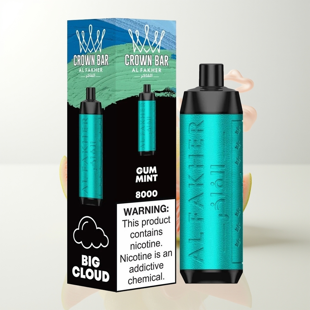 Al Fakher Crown Bar 8000 Crystal Wegwerf-Vape Kaugummi Minze 18ml 5mg 0,6 Ohm USB-C 600mAh