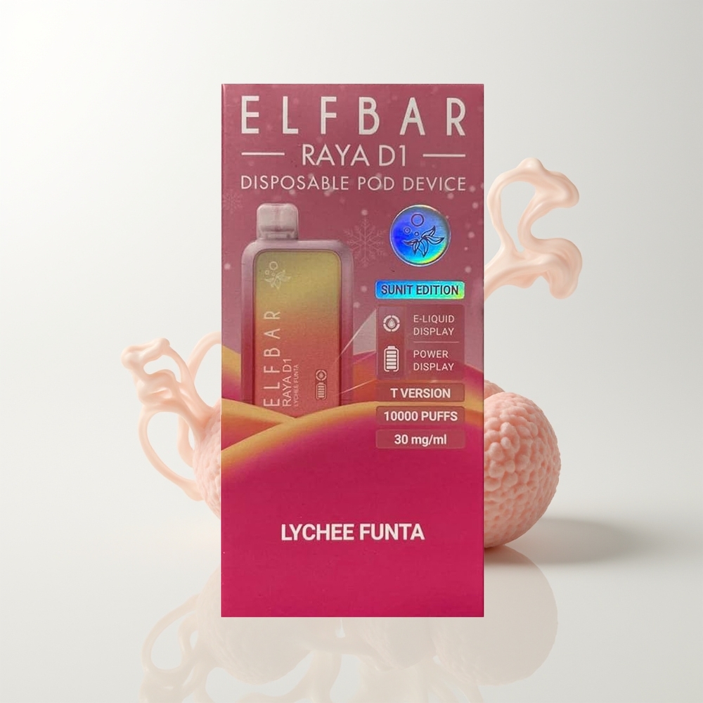 Elf Bar Raya D1 13000 Züge Litschi Funta Typ-C Aufladung 650mAh Akku 18ml