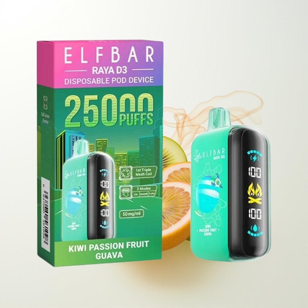 ELF BAR RAYA D3 25000 Züge Kiwi Passionsfrucht Guava 850mAh 23ml Typ-C